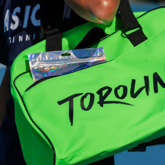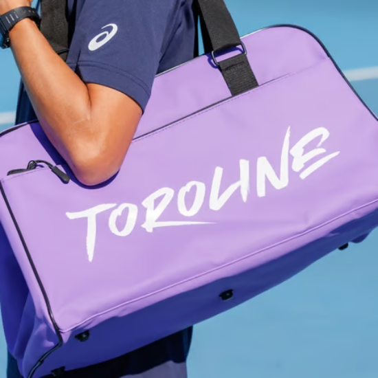 TOROLINE トロライン ダッフルバッグ 2025 / DUFFE BAG (TORO-DUFFE)は、洗練されたデザインが特徴のテニス用バッグです。このダッフルバッグは、テニスコートやスポーツジムに最適なサイズで、必要なアイテムをたっぷり収納できます。内部は広々としており、さらにグリップエンドにはテニスラケットも収納可能!グリーンとパープルの2色展開で、お好きなカラーを選んでいただけます。